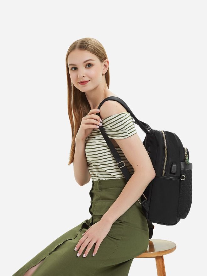 • This backpack is made with nylon that is durable, water-repellent and easy to clean.